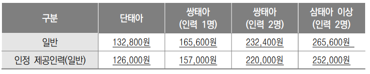 * 산모 신생아 건강관리 서비스 가격 및 정부지원금