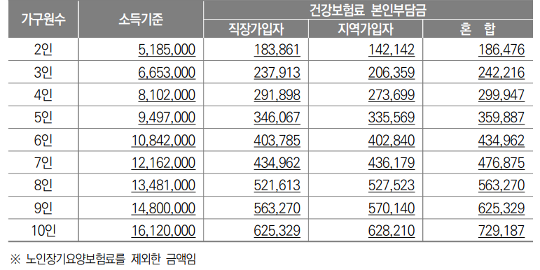 * 2023년 건강보험료 본인부담금에 의한 기준 중위소득 150% 판정기준