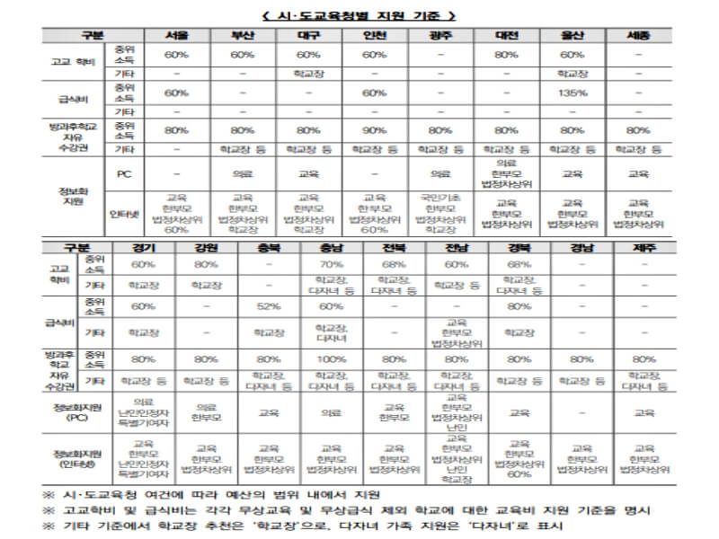 ※ 다만, 지원액 등은 시・도 교육청별로 상이할 수 있으니, 자세한 내용은 해당 교육청에서 확인해주세요.